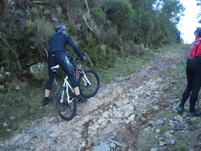 El peregrino solitario imponiendo su ley, los dos de atrás no sé que le tenían que decir o hacer.